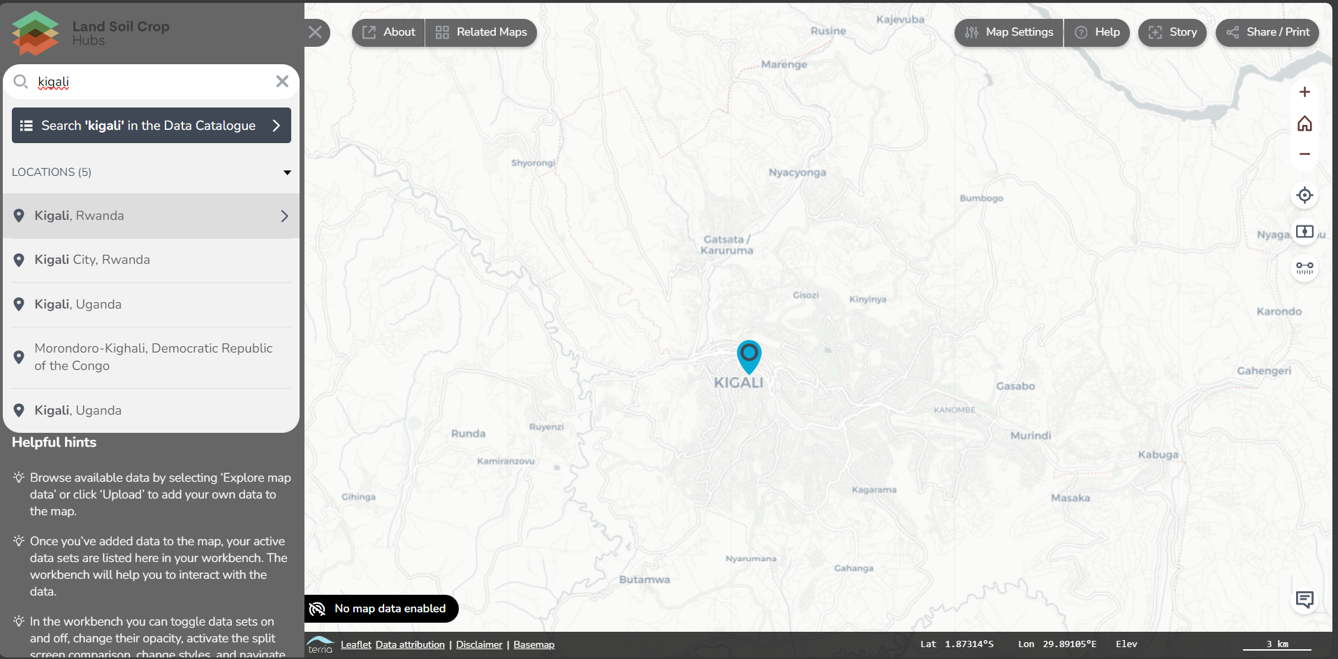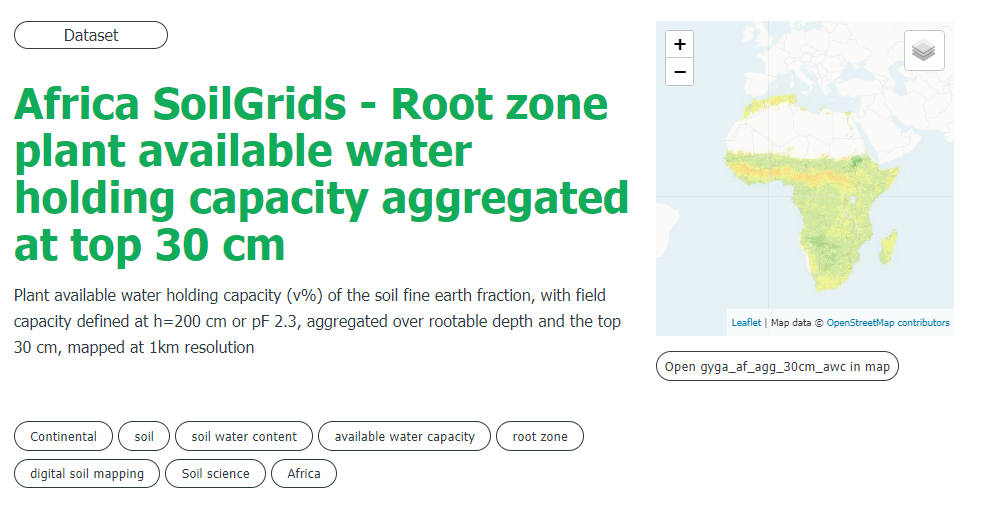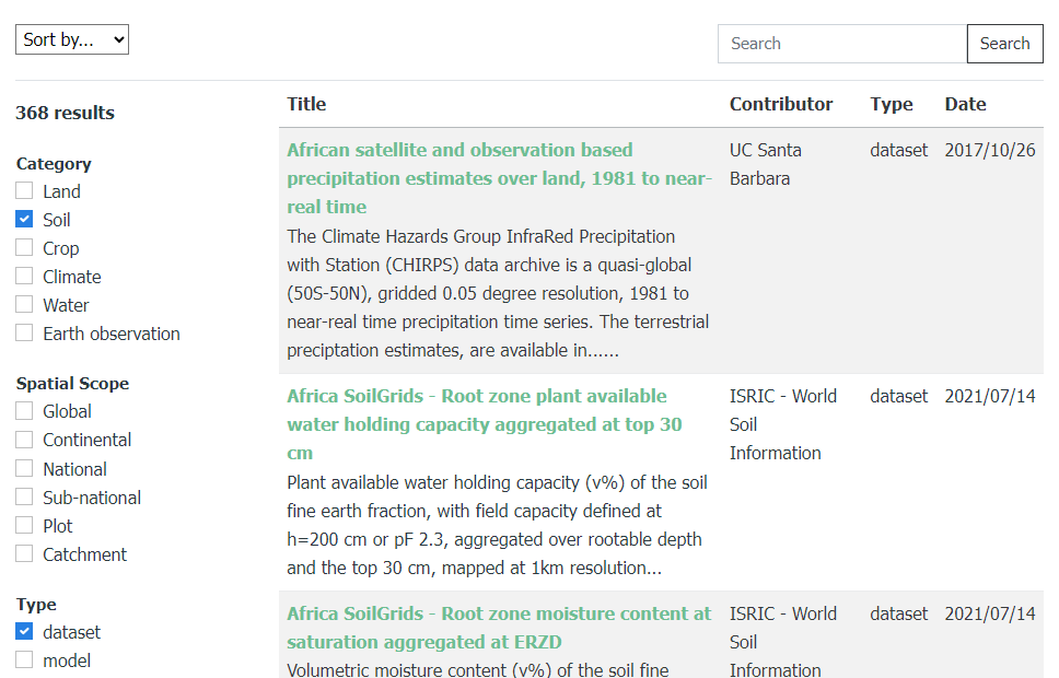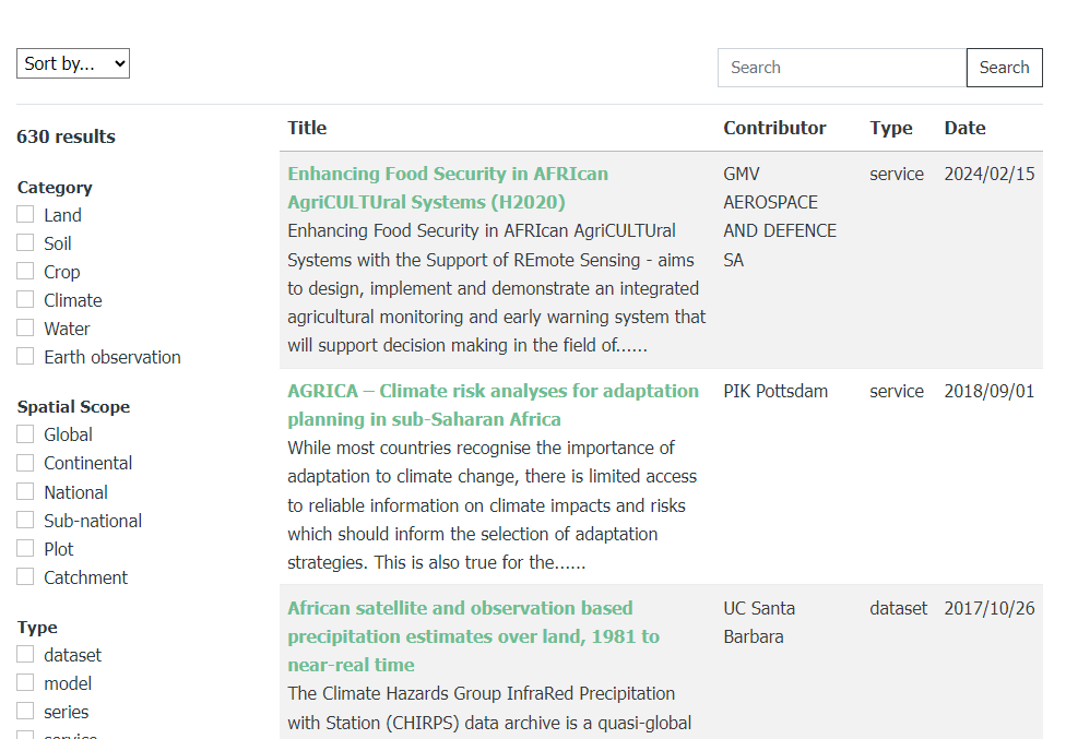 Second, any other keyword linked to the resource can be used to search in the catalogue, for example, land use or crop yield. This depends on which keywords are given to the resources.