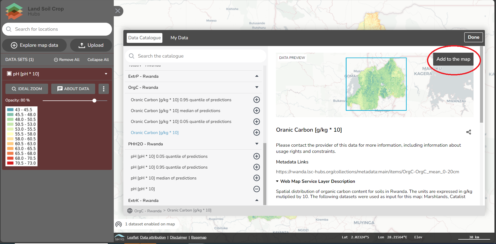 Try the keywords. Type in the search bar various keywords, such as soil or Land use or click on the keywords on the side.