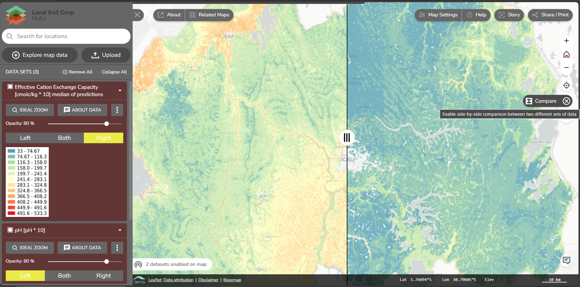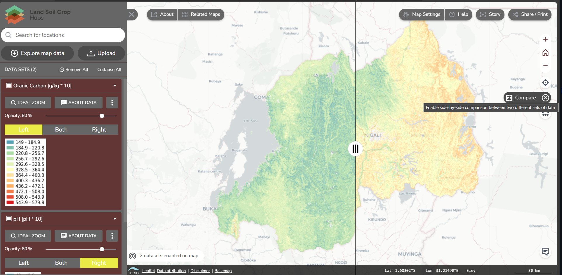 - Compare two map data side-by-side. In the next section on explore map data, we go into more detail on this function.