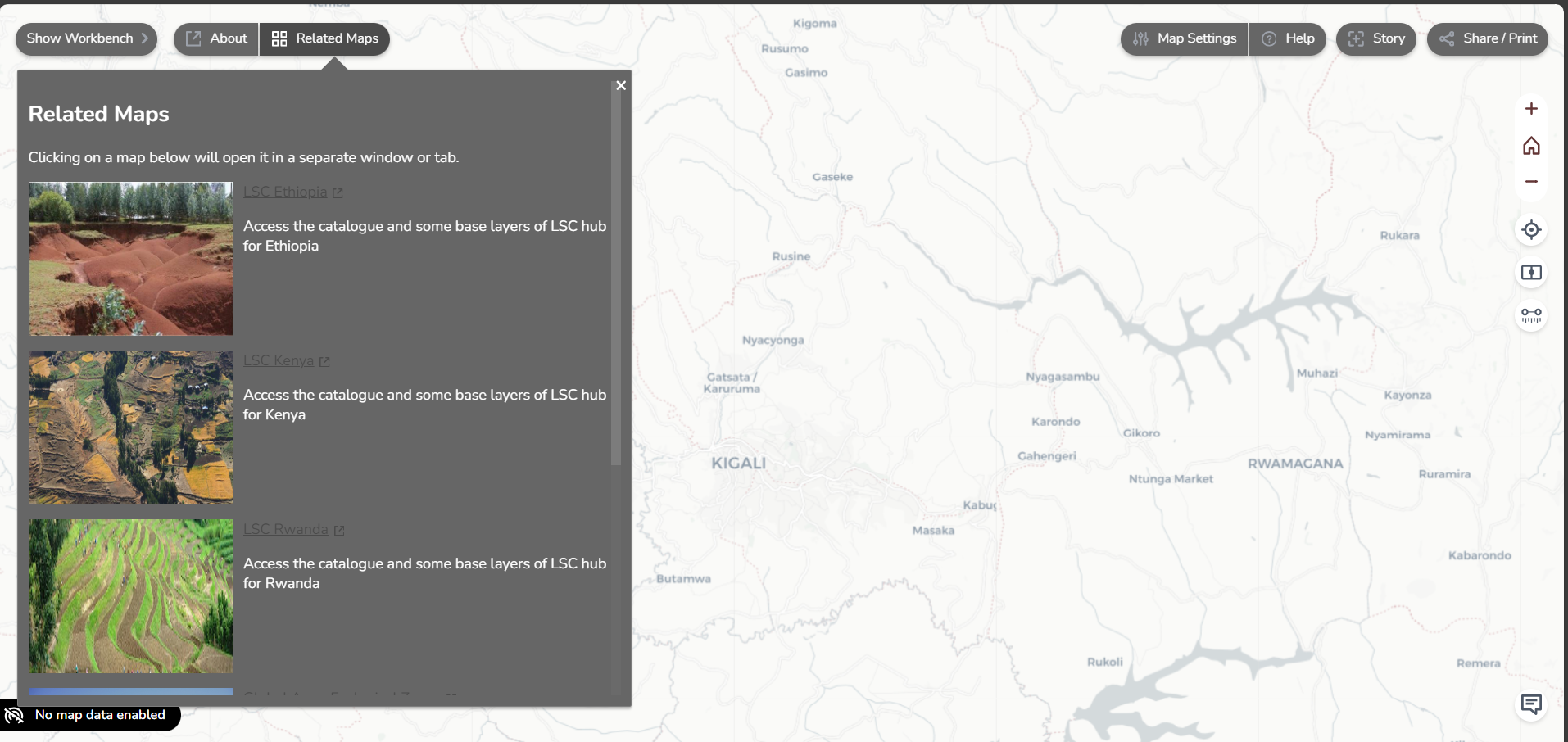 The map viewer can used for the visualisation of existing maps listed in the LSC catalogue, your data and web data. In this guideline, we will take you through the available functionalities of the map viewer.